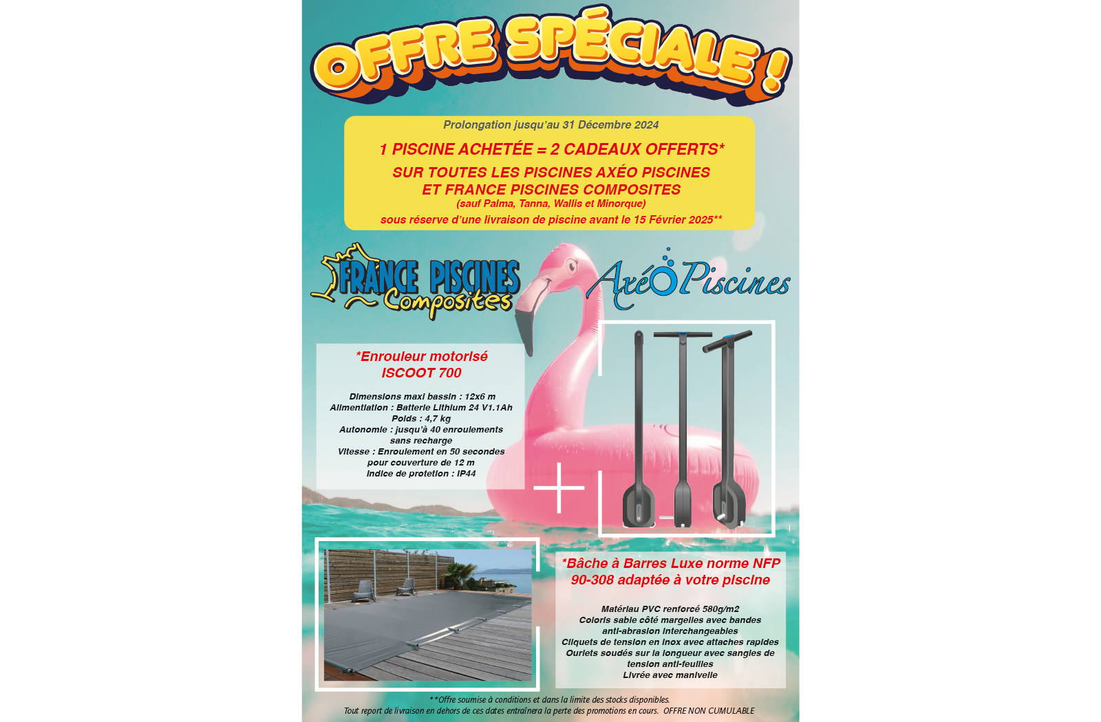 Fort de son succès nous continuons notre offre spéciale 2024 sur tous les modèles de la gamme AXÉO PISCINES !