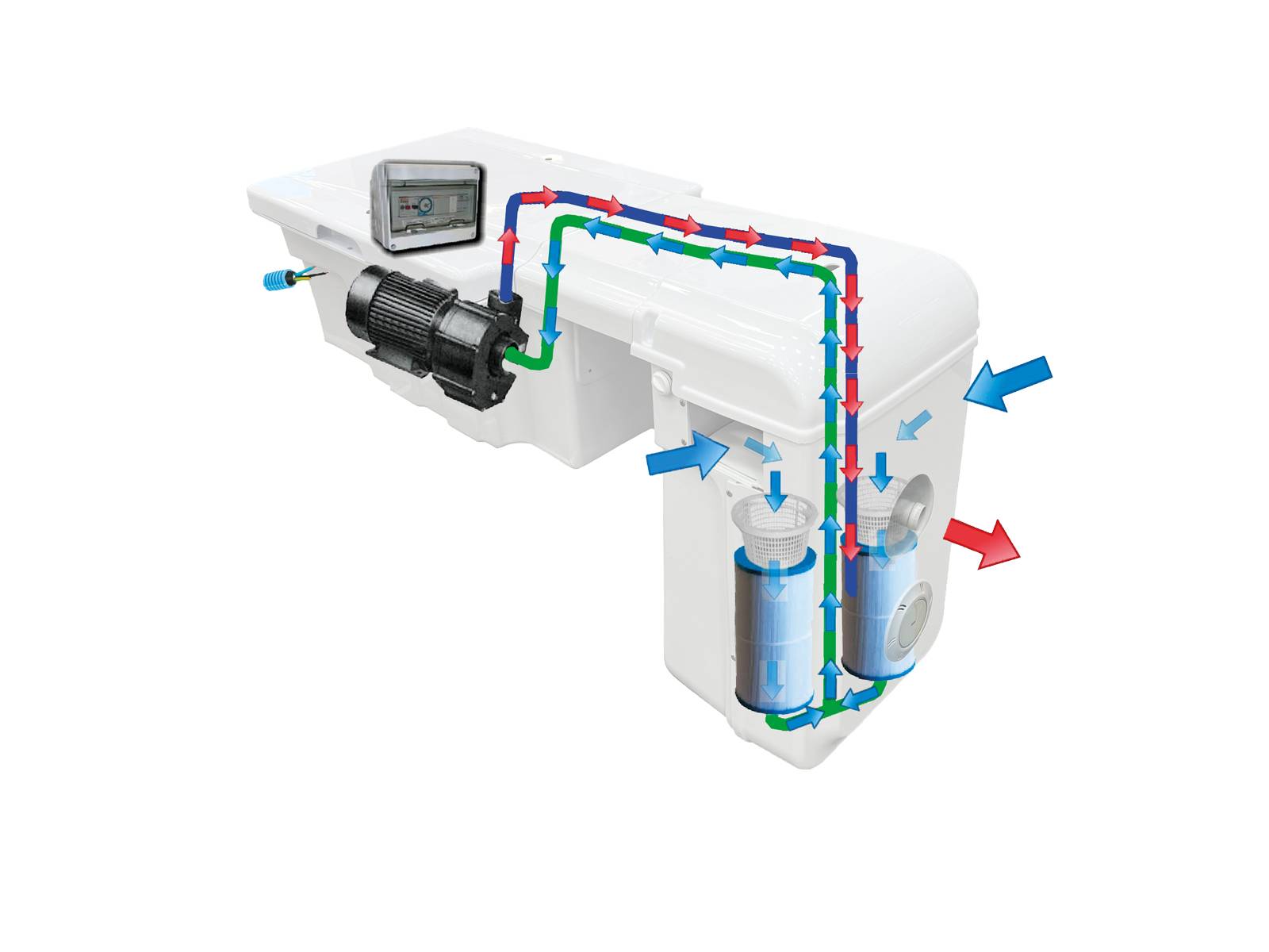 Le système de filtration est un BLOC filtrant développé par FRANCE PISCINES COMPOSITES.