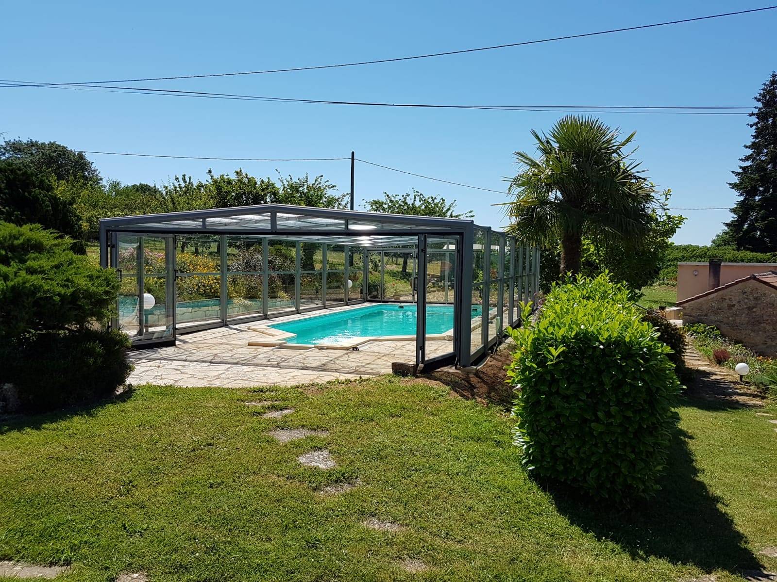 Enfin grâce à la hauteur de cet abri vous pourrez circuler librement autour du bassin et l'aménager comme vous le souhaitez.