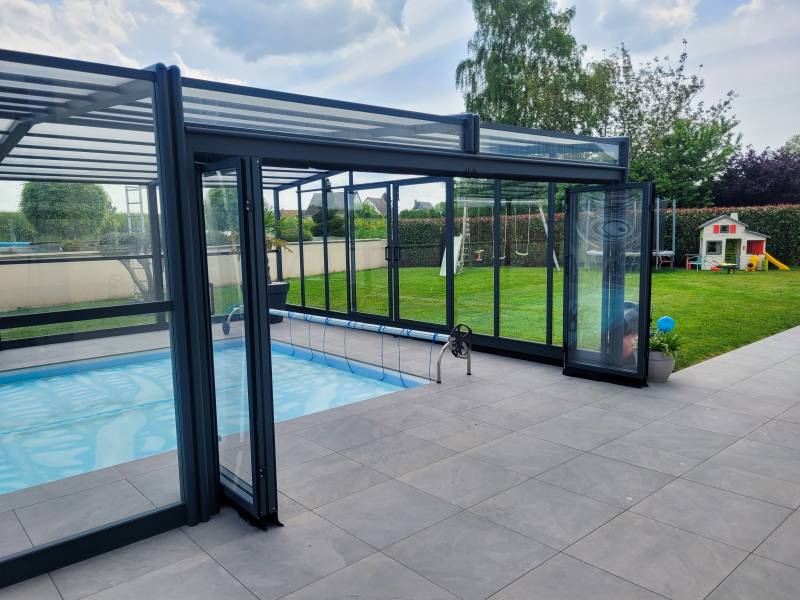 De fabrication 100% française avec des matériaux de qualités les abris de piscines haut Cassiopée ou Phénix, se déploient facilement au gré de vos envies. Comme les modèles précédemment présentés, vous pouvez choisir le système d'ouverture qui vous convient le mieux : portes coulissantes ou accordéons mais aussi l'équiper du chauffage à air pulsé.